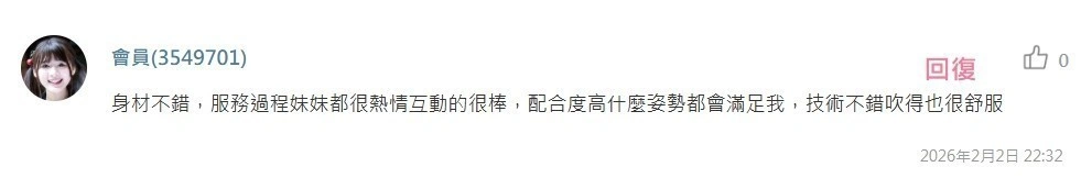 可配合 :奶砲,按摩,69,殘廢澡,LG(舌吻)依氣氛衛生而定,可親嘴,無套吹,口爆,足交,品鮑,顏射,無套做,無套內射,英文溝通,快餐,2S
