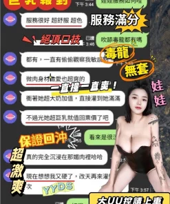 可配合 :奶砲,毒龍,按摩,69,共浴,LG(舌吻)依氣氛衛生而定,可親嘴,無套吹,口爆,品鮑,舔蛋,奶推,屁推,顏射,浴中蕭,艷舞秀,絲襪,玩具(按摩棒),玩具(跳蛋),情趣用品(客自備),無套做,無套內射,自慰秀,英文溝通,快餐,2S,包夜