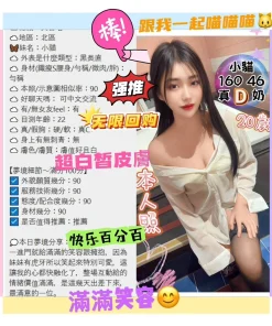 可配合 :毒龍,按摩,殘廢澡,LG(舌吻)依氣氛衛生而定,可親嘴,無套吹,口爆,吞精,舔蛋,冰火,變裝,絲襪,自慰秀,快餐,2S,包夜