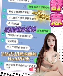可配合 :奶砲,毒龍,按摩,69,共浴,LG(舌吻)依氣氛衛生而定,可親嘴,無套吹,品鮑,舔蛋,奶推,顏射,絲襪,玩具(按摩棒),玩具(跳蛋),無套做,自慰秀,快餐,2S