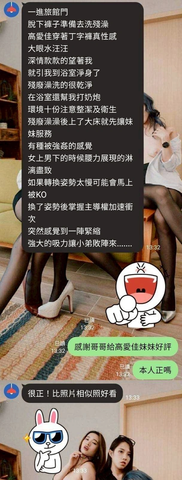 可配合 :按摩,69,共浴,LG(舌吻)依氣氛衛生而定,可親嘴,無套吹,口爆,品鮑,舔蛋,顏射,絲襪(自備免付),玩具(按摩棒),玩具(跳蛋),情趣用品(客自備),無套做,無套內射,2S