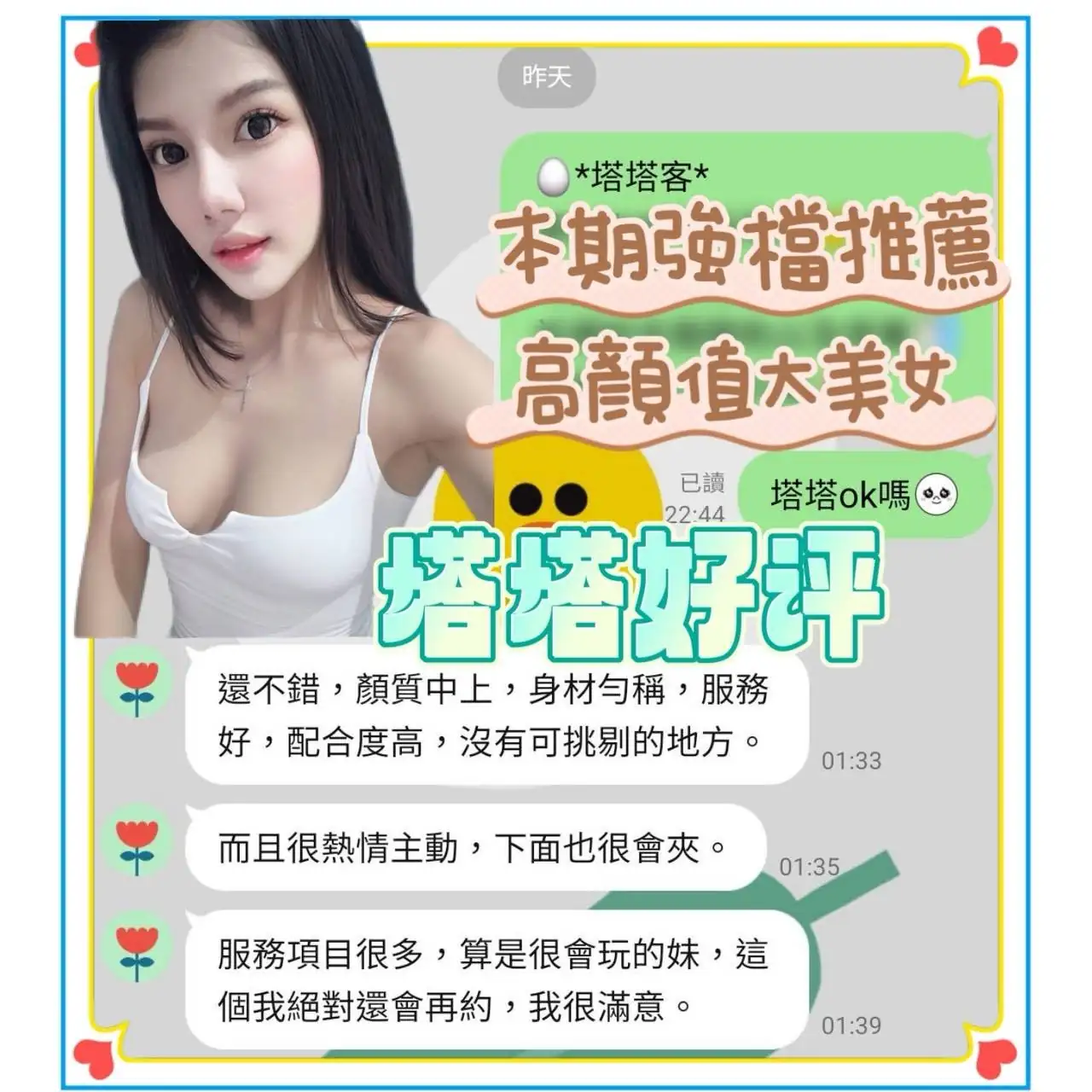 點擊右下角 LINE / TG 立即預約,請先確認時段、地區與方案後再安排。