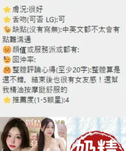 可配合 :奶砲,按摩,69,共浴,LG(舌吻)依氣氛衛生而定,可親嘴,無套吹,口爆,品鮑,輕功,奶推,絲襪(自備免付),快餐,2S