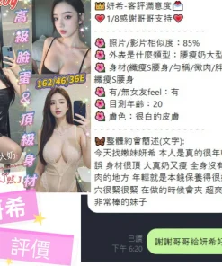 可配合 :奶砲,按摩,69,共浴,可親嘴,無套吹,品鮑,輕功,奶推,顏射,絲襪(自備免付),快餐,2S