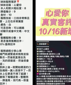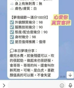 可配合 :奶砲,按摩,69,共浴,LG(舌吻)依氣氛衛生而定,可親嘴,無套吹,口爆,品鮑,舔蛋,奶推,屁推,冰火,顏射,絲襪,玩具(按摩棒),玩具(跳蛋),攝影,中文溝通,快餐,2S