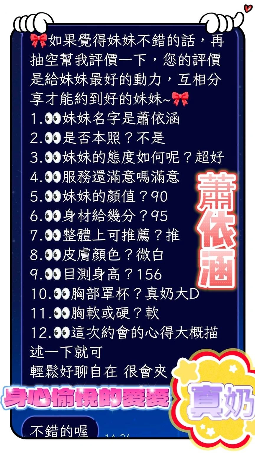 可配合 :奶砲,按摩,69,共浴,LG(舌吻)依氣氛衛生而定,可親嘴,無套吹,品鮑,舔蛋,絲襪,中文溝通,快餐,2S