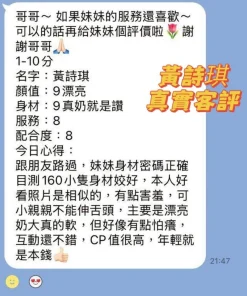 可配合 :奶砲,按摩,69,共浴,LG(舌吻)依氣氛衛生而定,可親嘴,無套吹,品鮑,舔蛋,奶推,屁推,冰火,絲襪,玩具(按摩棒),玩具(跳蛋),自慰秀,快餐,2S