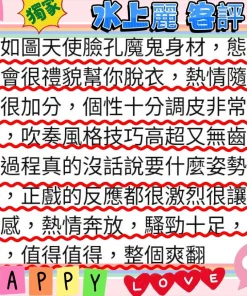 可配合 :69,共浴,可親嘴,無套吹,口爆,品鮑,屁推,水床浴,深喉嚨,變裝,玩具(按摩棒),玩具(跳蛋),無套做,無套內射,自慰秀,攝影,2S