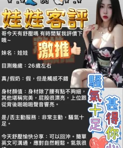 加價項目 : 2S+500,絲襪+100,0.01套+100,艷舞+300,自慰秀+500,口爆+500,無套內射+1000