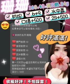 加價項目 : 2S+500(60分),絲襪+100,口爆+500,無套內射+1000