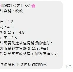 可配合 :奶砲,按摩,69,共浴,可親嘴,無套吹,口爆,品鮑,顏射,絲襪(自備免付),快餐,2S,包夜