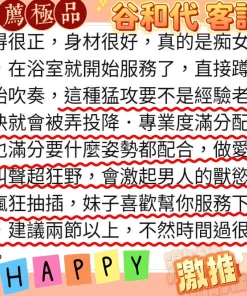 可配合 :毒龍,按摩,69,共浴,可親嘴,無套吹,口爆,吞精,品鮑,屁推,顏射,水床浴,深喉嚨,變裝,玩具(按摩棒),玩具(跳蛋),無套做,無套內射,自慰秀,攝影,2S