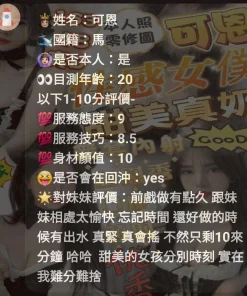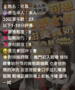 可配合 :奶砲,按摩,69,共浴,殘廢澡,泰國浴,LG(舌吻)依氣氛衛生而定,可親嘴,無套吹,口爆,品鮑,舔蛋,奶推,屁推,顏射,無套做,無套內射,自慰秀,快餐,2S