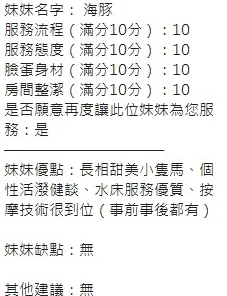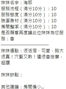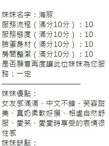 可配合 :奶砲,按摩,69,共浴,LG(舌吻)依氣氛衛生而定,可親嘴,無套吹,品鮑,舔蛋,奶推,屁推,顏射,水床浴,變裝(自備免付),絲襪(自備免付),中文溝通,快餐,2S