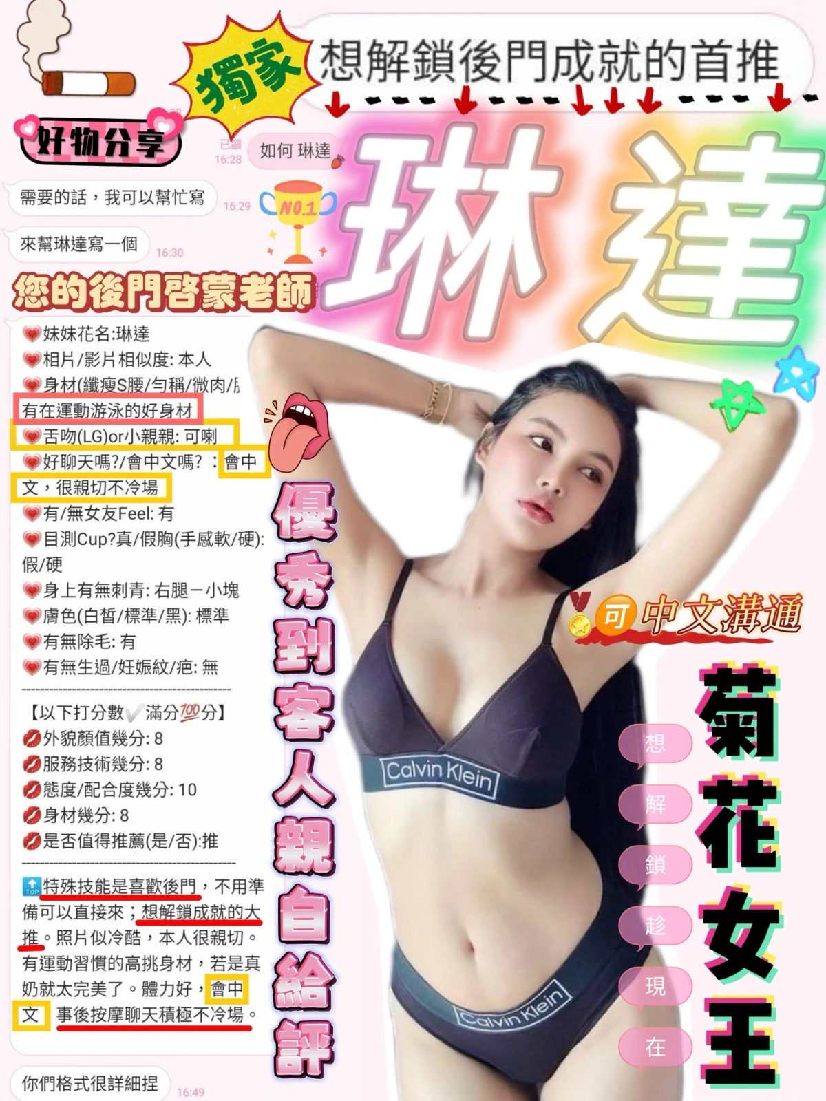 可配合 :奶砲,按摩,69,共浴,LG(舌吻)依氣氛衛生而定,可親嘴,品鮑,舔蛋,奶推,屁推,冰火,浴中蕭,絲襪,後門,中文溝通,快餐,2S,NS