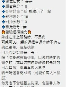 可配合 :奶砲,毒龍,按摩,69,LG(舌吻)依氣氛衛生而定,可親嘴,無套吹,口爆,品鮑,舔蛋,顏射,水床浴,絲襪(自備免付),玩具(按摩棒),玩具(跳蛋),情趣用品(客自備),自慰秀,白人,英文溝通,快餐,2S,包夜