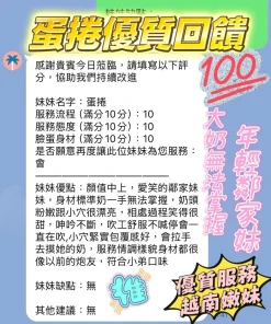 可配合 :奶砲,按摩,69,共浴,可親嘴,無套吹,口爆,品鮑,舔蛋,奶推,屁推,冰火,顏射,浴中蕭,深喉嚨,變裝(自備免付),絲襪(自備免付),快餐,2S,包夜