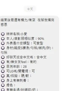 可配合 :奶砲,按摩,69,殘廢澡,LG(舌吻)依氣氛衛生而定,可親嘴,無套吹,口爆,品鮑,舔蛋,奶推,屁推,絲襪(自備免付),中文溝通,快餐,2S