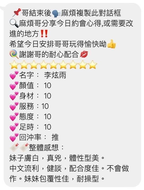 可配合 :奶砲,毒龍,按摩,69,殘廢澡,LG(舌吻)依氣氛衛生而定,可親嘴,無套吹,口爆,足交,品鮑,舔蛋,冰火,絲襪(自備免付),玩具(按摩棒),玩具(跳蛋),情趣用品(客自備),中文溝通,快餐,2S