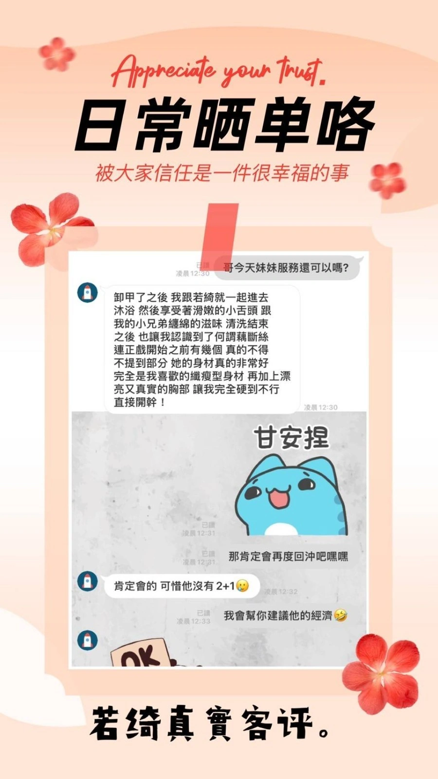 不接受 : 酒客,毒品,白 人,黑人,偷拍,皮膚異常者,性癖好特殊者