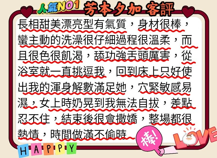 可配合 :毒龍,顏射,玩具(按摩棒),玩具(跳蛋),無套做,無套內射,自慰秀,攝影,2S