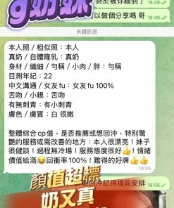 可配合 :奶砲,按摩,69,殘廢澡,LG(舌吻)依氣氛衛生而定,可親嘴,無套吹,舔蛋,漫遊,奶推,冰火,顏射,深喉嚨,絲襪(自備免付),白人,中文溝通,快餐,2S,包夜